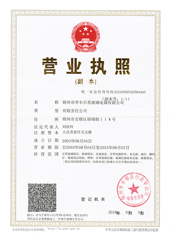 錦州市華豐石英玻璃電器有限公司
